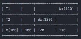 如果我们允许 T2 在 T1 RC 和 WC 之间写入数据,那么 T2 的更新也会丢失。
