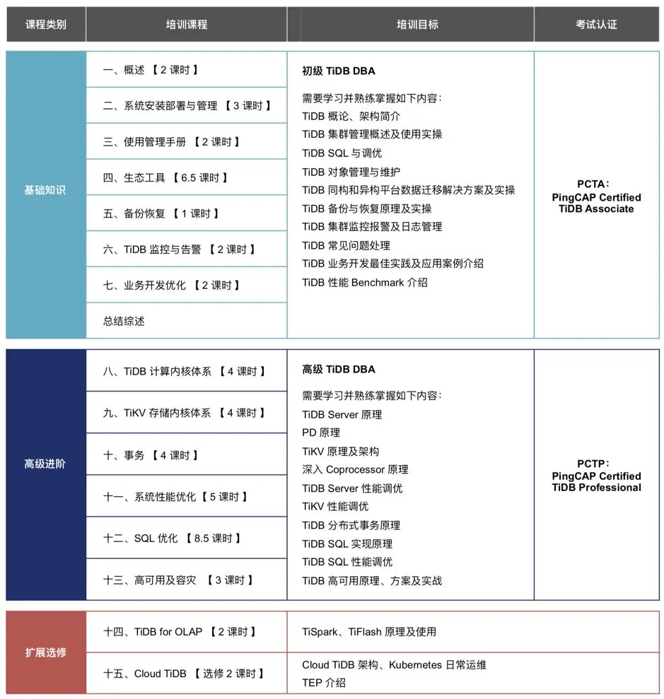 PingCAPUniversity发布TiDB培训课程2.0,新增分布式事务等原理讲解,优化学习路径,加强理论与实践结合,培养NewSQL人才。