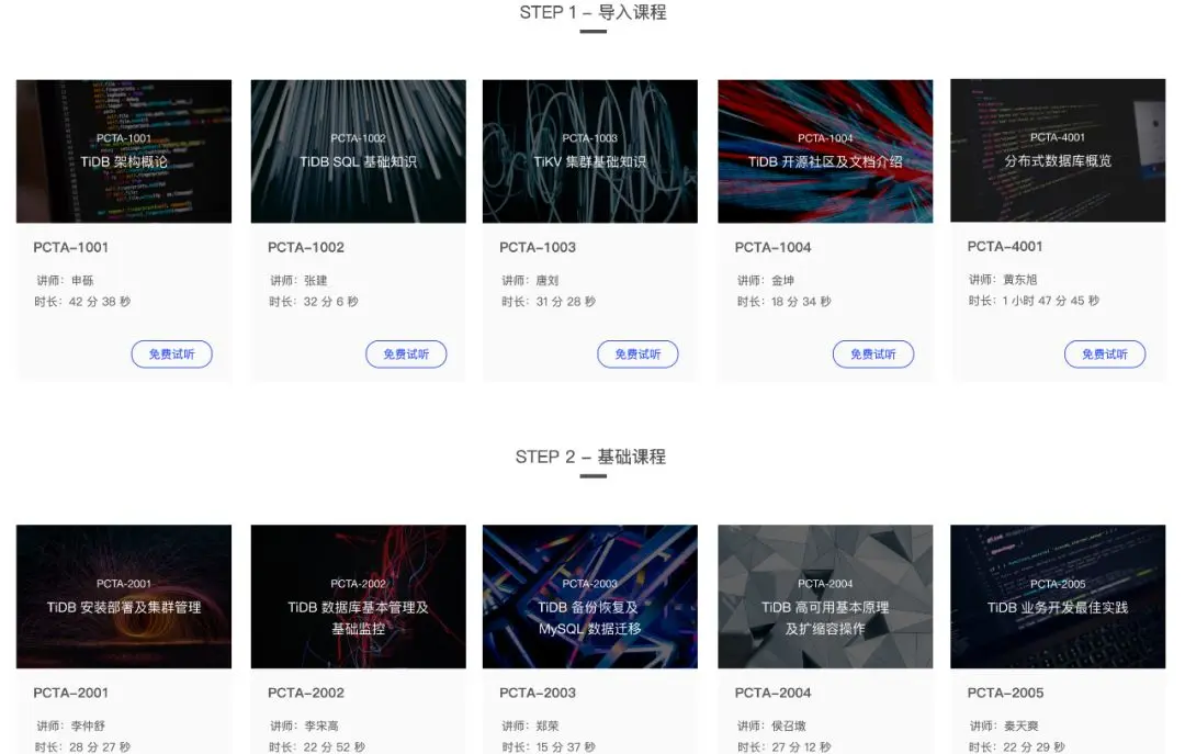 PingCAP University 官方网校(https://university.pingcap.com/) 已正式上线,欢迎进入线上网校学习,免费线上基础课程有助于学员快速了解 TiDB 产品全貌。学员除了可以在线自主学习外,还可以在讲师集中答疑中深入交流,优秀学员还可享受线下培训的奖励计划。