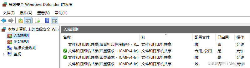 在入站/出站规则中找到文件和打印机共享(回显请求 - ICMPv4-In/Out),启用规则