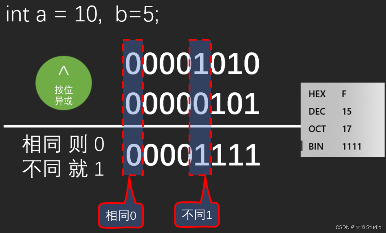 按位异或: