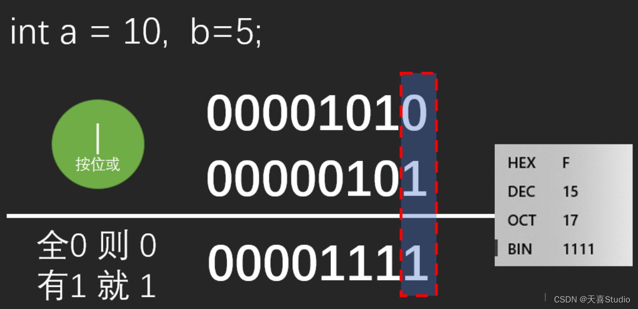 printf("%d\n",0b1010 | 0b0101);//————输出结果为15