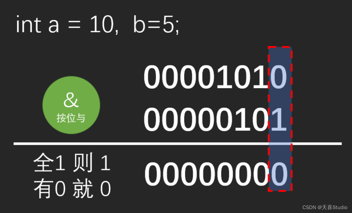 printf("%d\n", 0b1010 & 0b0101);//二进制形式 ————输出结果为0