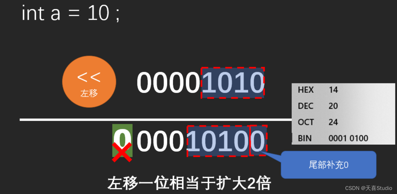 按位左移: