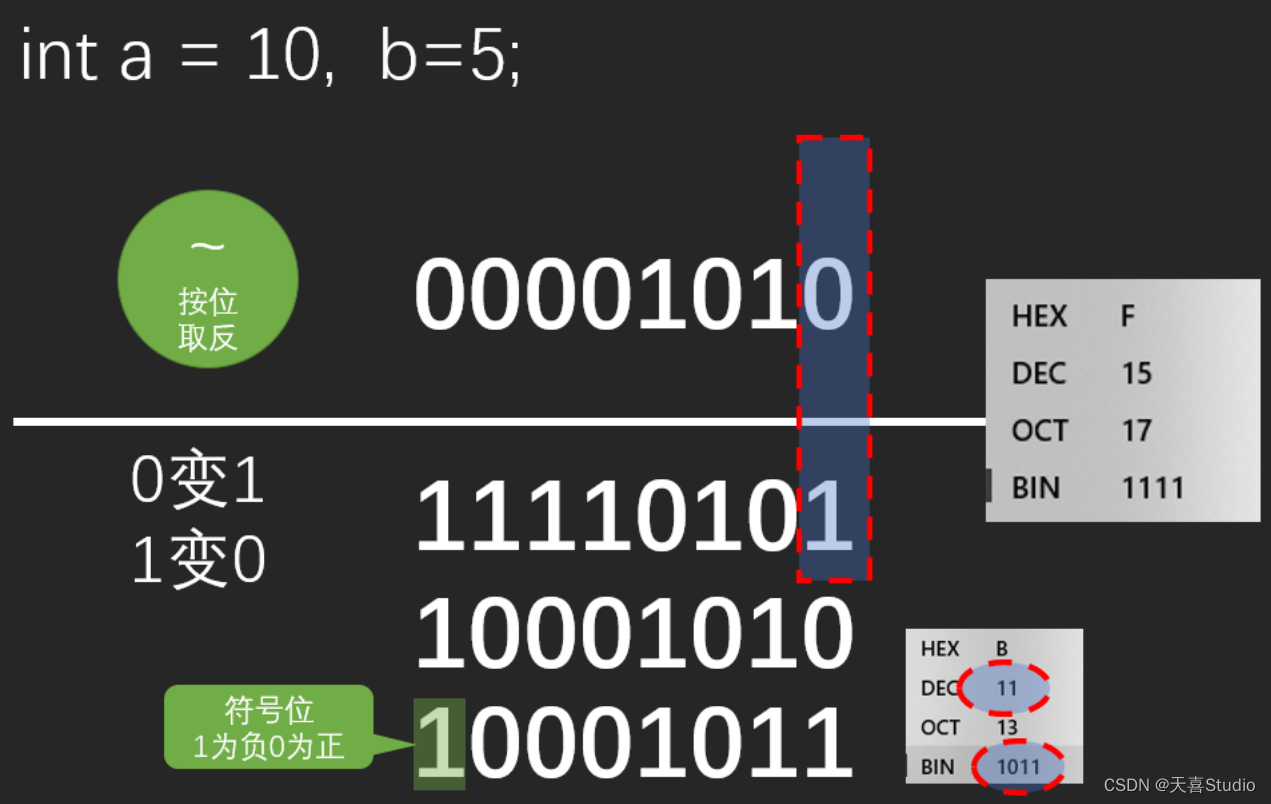 按位取反 ~ :