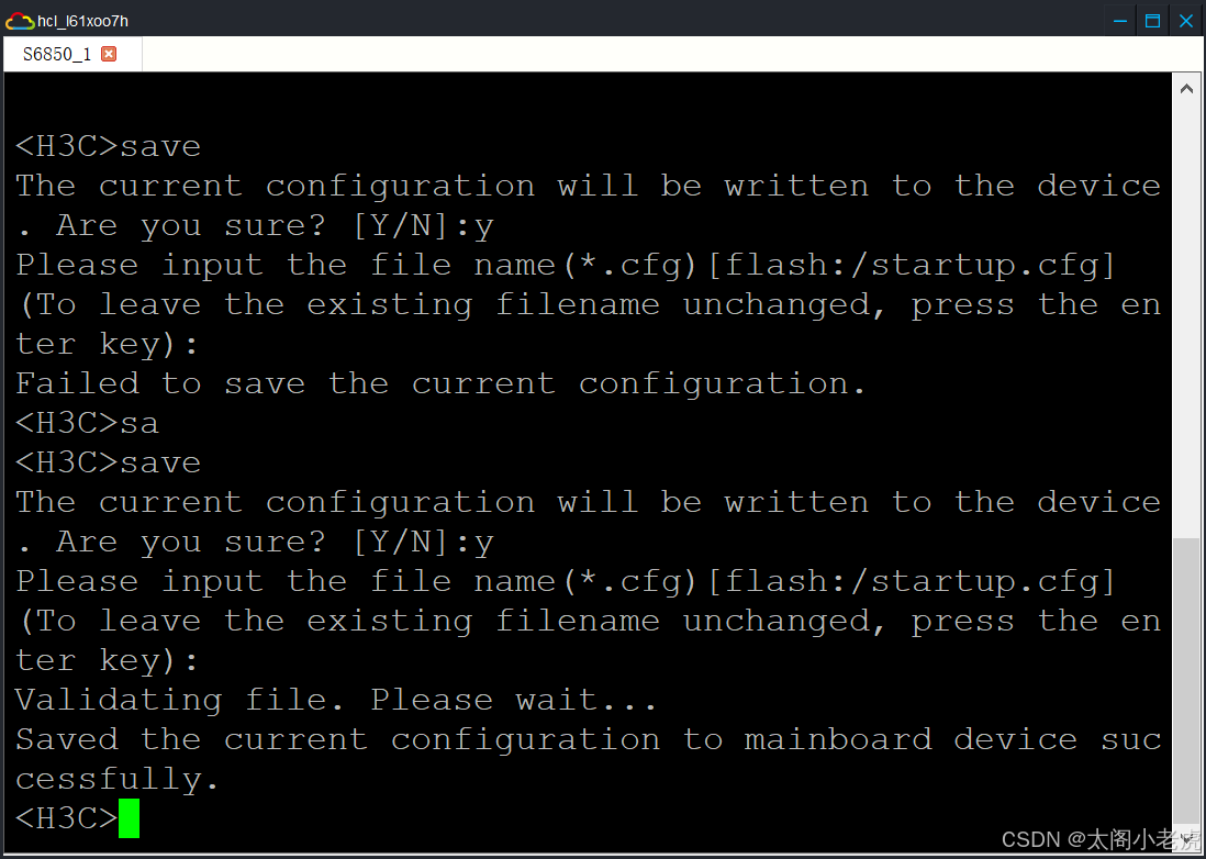<H3C>save(尖括号模式,如果不是就quit向上退一个视图)