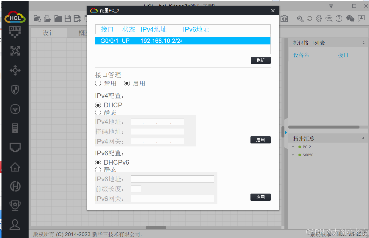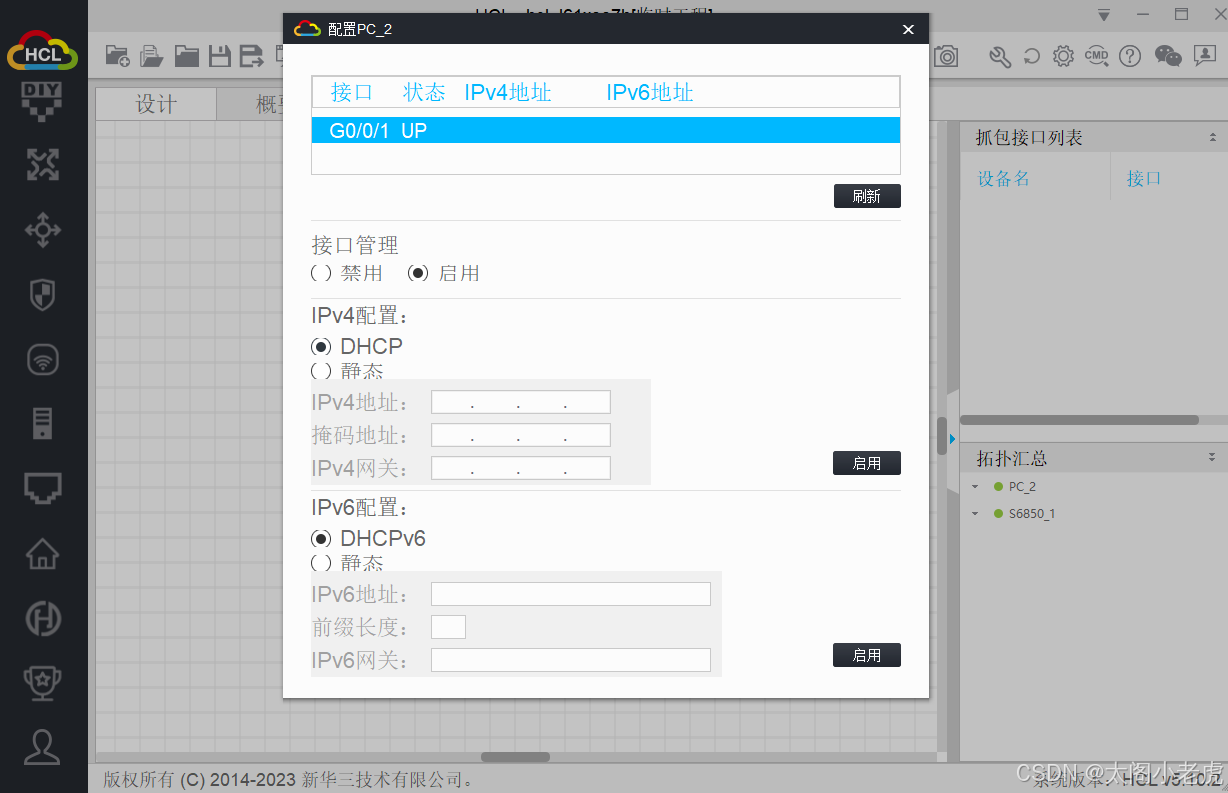 (3)接口管理选择启用,IPv4配置选择DHCP,然后点启用