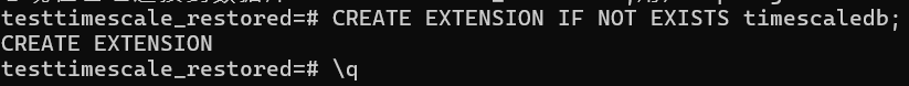这里有一个大坑,使用psql创建数据库时,是不分大小写的,例如我这里创建的是TestTimeScale_Restored,但实际上你创建的是CREATE DATABASE testtimescale_sestored.如果你想创建TestTimeScale_Restored,则需要使用双引号进行包裹CREATE DATABASE “TestTimeScale_Restored“