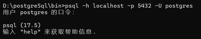 1.还是刚刚的cmd窗口,也就是在bin目录下,输入以下命令链接到postgresSql: