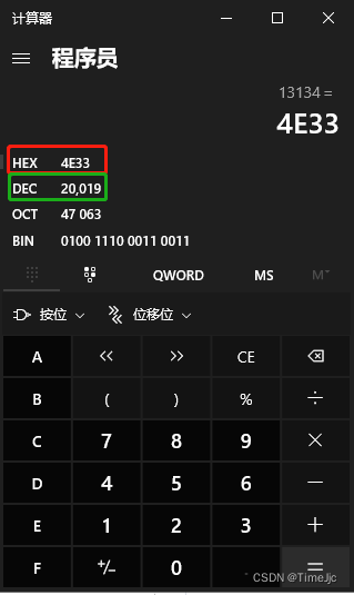 计算器中点击HEX,然后输入4E33,找到十进制(DEC)的结果