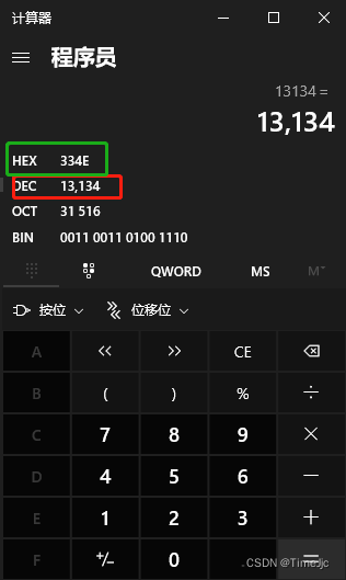 输入十进制的13134(inet_ntoa转换后打印出来的),得到十六进制(HEX)的334E;然后将HEX前后顺序换一下,得到: 4E33;
