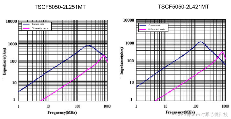 - 阻抗:TSCF5050-2LSXMT系列产品的阻抗值通常在特定频率下(如100MHz)进行测量,其阻抗值范围较广,具体取决于具体型号。例如,TSCF5050-2L251MT的阻抗为250Ω,而TSCF5050-2L501MT的阻抗为500Ω,。