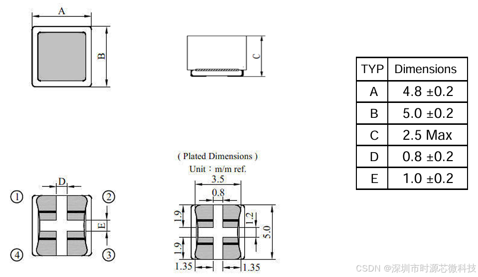 - 尺寸与封装:该系列产品通常采用小型化的封装形式,以适应现代电子设备对小型化的需求。具体尺寸因型号而异,但通常具有相似的长宽高比例。