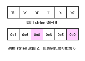 因为C字符串不记录自身长度,这导致在使用 strcat 等拼接函数时可能导致内存越界问题。同样的,当截断字符串时,因为没有保存长度,也无法安全的复用。虽然在长度变化时可以通过重新分配内存的方式解决上述问题,但是频繁的系统调用会导致代码非常低效。
