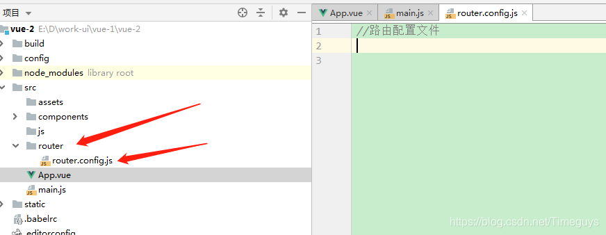 cnpm install vue-router --save-dev3、创建router.config.js文件,以方便路由的管理: