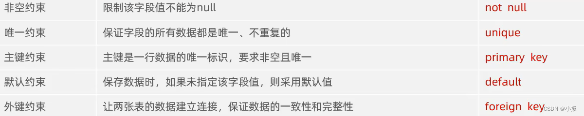 约束目的:保证数据中数据的正确性、有效性和完整性。