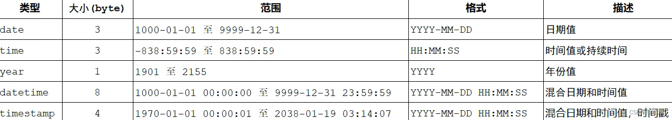 数据类型可以简单理解为,该字段需要存储空间的大小。总共分为三大类:数值类型、字符串类型、日期时间类型。