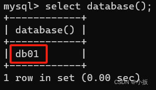 select database();这里的 database 是没有加上 s 的且注意是加上 () 。