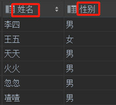 -- 设置别名 select name as 姓名,gender as 性别 from tb_user;该操作结果为: