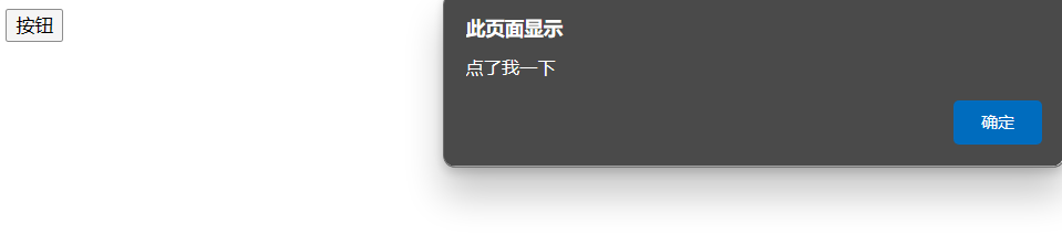 <!DOCTYPE html> <html lang="en"> <head> <meta charset="UTF-8"> <meta name="viewport" content="width=device-width, initial-scale=1.0"> <title>Document</title> <script src="https://cdn.jsdelivr.net/npm/vue/dist/vue.js"></script> </head> <body> <div id="app"> <input type="button" value="按钮" v-on:click="on()"> </div> </body> <script> new Vue({ el:"#app", data:{ }, methods:{ on:function(){ alert("点了我一下"); } } }) </script> </html>指令 v-on 将监听器进行绑定,一旦触发,会执行 methods 中指定的方法。v-on:click="on()" 可以简写为 @cilck="on()" 。