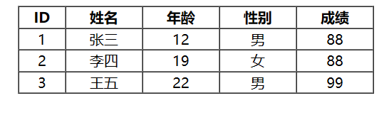 <!DOCTYPE html> <html lang="en"> <head> <meta charset="UTF-8"> <meta name="viewport" content="width=device-width, initial-scale=1.0"> <title>Document</title> <script src="https://cdn.jsdelivr.net/npm/vue/dist/vue.min.js"></script> <script src="https://unpkg.com/axios/dist/axios.min.js"></script> </head> <body> <div id="app"> <table border="1px" cellspacing="0px" align="center" width="400px"> <tr> <th>ID</th> <th>姓名</th> <th>年龄</th> <th>性别</th> <th>成绩</th> </tr> <tr v-for="(emp, index) in emps"> <td align="center">{{index+1}}</td> <td align="center">{{emp.name}}</td> <td align="center">{{emp.age}}</td> <td align="center" v-if="emp.gender == 1">男</td> <td align="center" v-if="emp.gender == 2">女</td> <td align="center">{{emp.score}}</td> </tr> </table> </div> </body> <script> new Vue({ el:"#app", data:{ emps:[] }, mounted() { axios.get("http://api.doc.jiyou-tech.com/mock/6407/text").then((result) => { this.emps = result.data.data }) } }) </script> </html>还用到了 vue 生命周期中的 mounted() ,挂载结束后,就会自动调用该函数。this 将获取的 json 赋值给当前对象的 emps 。