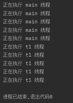 public class demo4 { public static void main(String[] args) throws InterruptedException { //拿到当前 main 线程对象 Thread mainThread = Thread.currentThread(); Thread t1 = new Thread(()->{ //在 t1 线程中调用 join() 方法, //阻塞当前 t1 线程,等待 main 线程执行完毕 try { mainThread.join(); } catch (InterruptedException e) { throw new RuntimeException(e); } for (int i = 0; i < 5; i++) { try { Thread.sleep(1000); } catch (InterruptedException e) { throw new RuntimeException(e); } System.out.println("正在执行 t1 线程"); } }); t1.start(); for (int i = 0; i < 5; i++) { Thread.sleep(1000); System.out.println("正在执行 main 线程"); } } }运行结果: