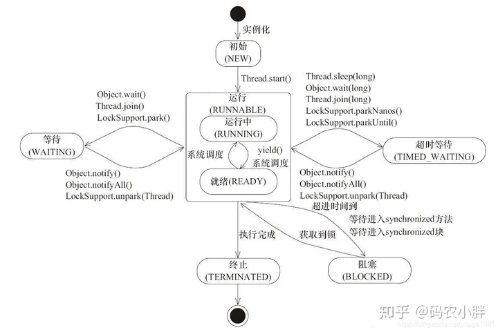 有两种情况都属于就绪状态:1)还没运行,就绪状态。但是线程已经准备好运行了,只等待被 CPU 调度执行。2)线程正在被 CPU 调度执行中,运行状态。总而言之,无论是就绪状态还是运行状态在 Java 中都属于 Runnable 状态,即就绪状态。