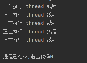 public class demo6 { public static void main(String[] args) { Thread thread = new Thread(()->{ for (int i = 0; i < 5; i++) { try { Thread.sleep(1000); } catch (InterruptedException e) { throw new RuntimeException(e); } System.out.println("正在执行 thread 线程"); } }); thread.start(); } }运行结果: