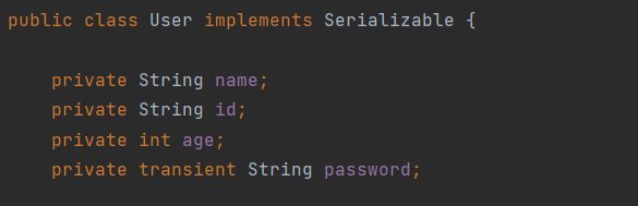 假设:需求进行序列化的时候,不能将密码进行序列化操作,则可以用 transient 修饰成员变量。