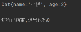 import java.lang.reflect.Field; public class demo9 { public static void main(String[] args) throws NoSuchFieldException, IllegalAccessException { //先获取class对象 Class c = Cat.class; //Cat 的实例对象 Cat cat = new Cat(); //再获取变量对象 Field fieldName = c.getDeclaredField("name"); Field fieldAge = c.getDeclaredField("age"); //禁止检查访问控制 fieldName.setAccessible(true); fieldAge.setAccessible(true); //进行赋值操作 fieldName.set(cat,"小板"); fieldAge.set(cat,2); //再进行取值操作 String name = (String) fieldName.get(cat); int age = (int) fieldAge.get(cat); //查看是否赋值成功 System.out.println(cat); } }运行结果: