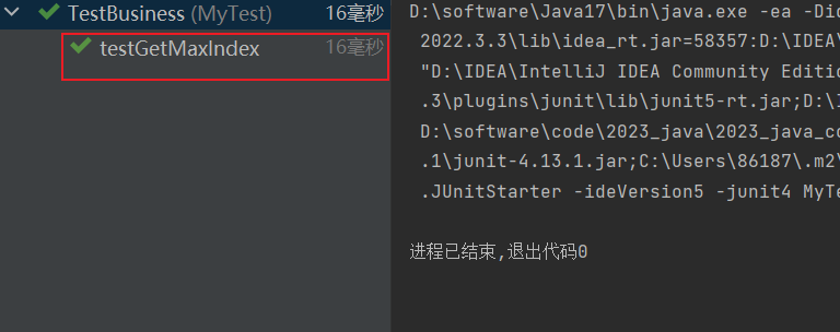 //项目业务二:获取字符串最大的索引下标 public static int getMaxIndex(String str){ if (str == null){ return 0; } return str.length()-1; }再来进行测试。
