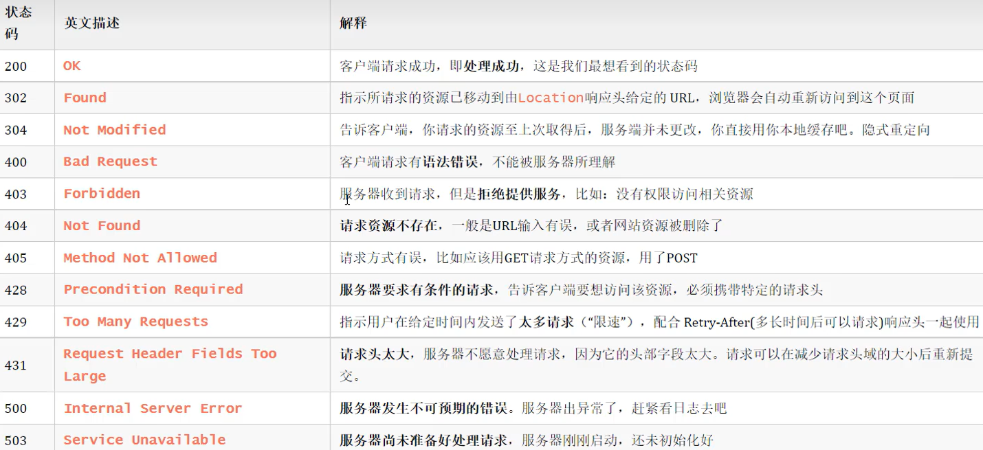 5)以 “5xx” 开头的状态码:服务器错误-处理发生错误,责任在服务端。如:程序抛异常等。