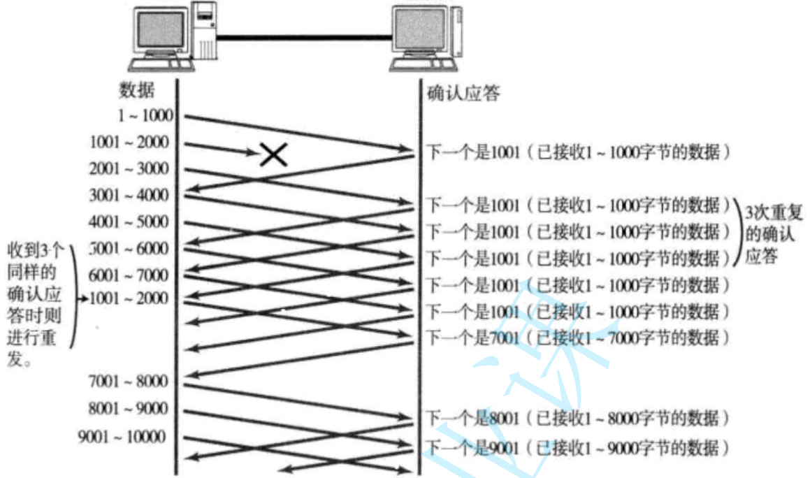 如果发送端主机连续三次接收到 1001 这样的应答,那么发送端就会在缓冲区中拿到相应的数据重新发送。