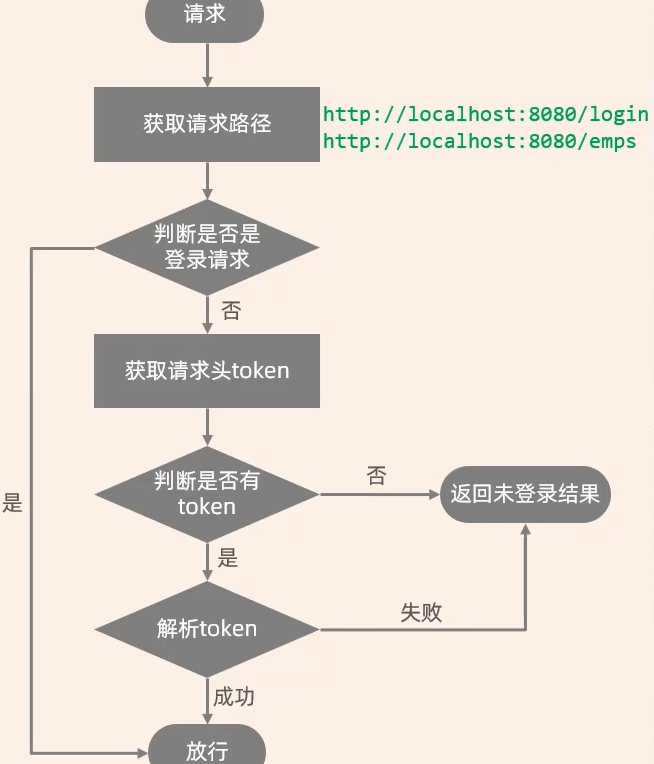 //获取url String url = request.getRequestURI(); //判断该url是否是登录请求 if (url.contains("login")){ //如果是的话,直接放行 filterChain.doFilter(servletRequest,servletResponse); return; }