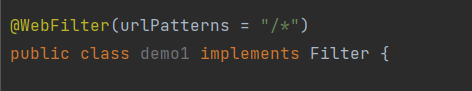 import javax.servlet.*; import javax.servlet.annotation.WebFilter; import java.io.IOException; @WebFilter(urlPatterns = "/*") public class demo1 implements Filter { @Override public void doFilter(ServletRequest servletRequest, ServletResponse servletResponse, FilterChain filterChain) throws IOException, ServletException { //放行之前执行 System.out.println("demo1 拦截请求之前,可执行多次!!!!!"); //放行 filterChain.doFilter(servletRequest,servletResponse); //放行之后执行 System.out.println("demo1 拦截请求之后,可执行多次!!!!!"); } }demo2 代码: