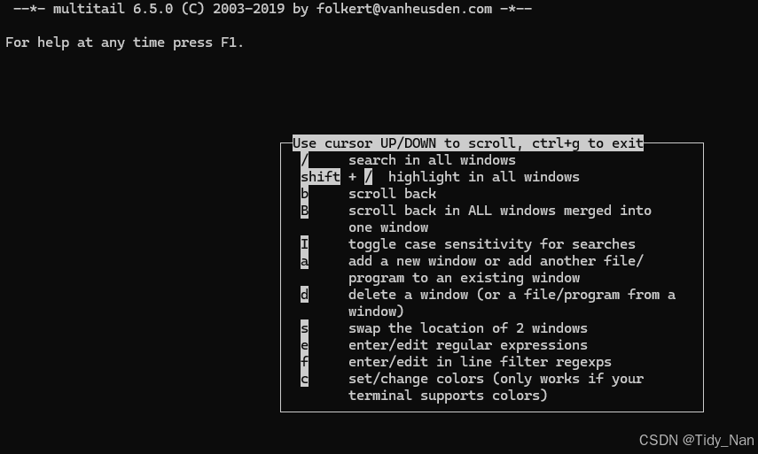 进入到了一个命令行界面,它提示我们要按F1来执行,按完F1后出现了一个使用手册,发现可以按一下a,可以添加内容,可以是一个文件或者是命令,既然可以上传一个命令,那就先用本机nc一下,再通过命令传入