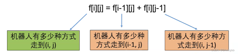 可以由原题“有多少种方式从左上角走到(m-1,n-1)”转化为子问题“机器人有多少种方式从左上角到(m-2,n-1)和(m-1,n-2)”