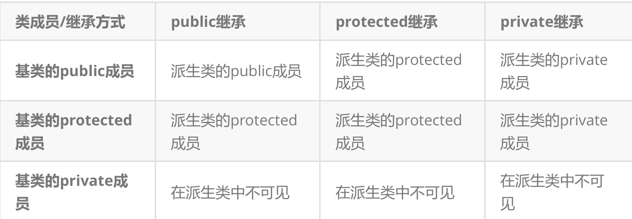 继承方式的不同让派生类继承的成员的访问方式有所变化: