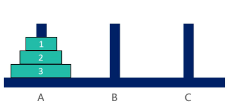 - 每次只能移动一个圆盘;