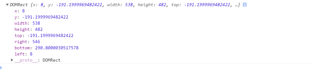 x,left 相对视口的左侧距离,y,top相对视口的顶部距离,bottom相对视口的底部距离,right相对视口的右侧距离。 width: 该对象的宽度(包括边框),height: 该对象的高度(包括边框)