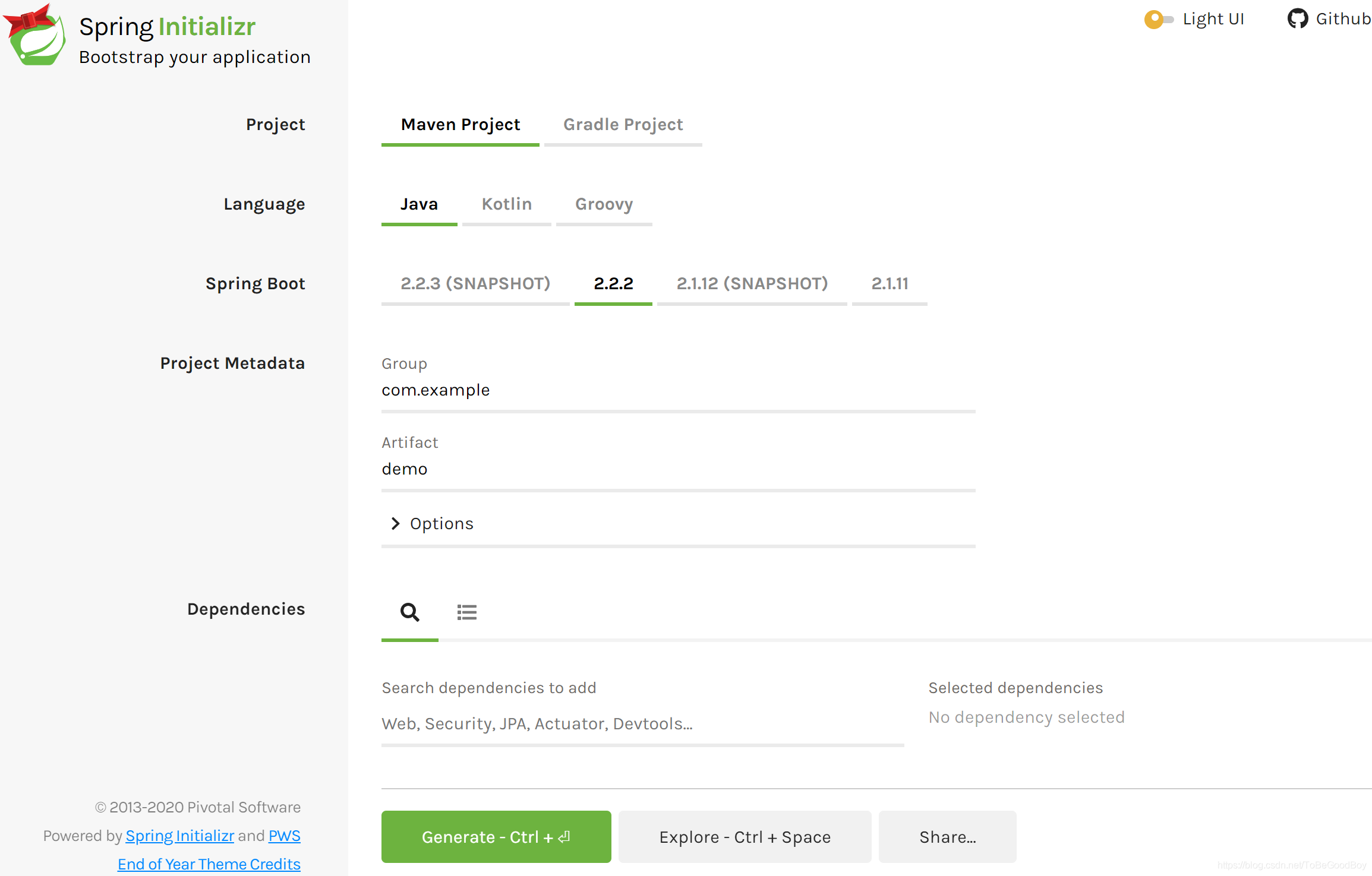 我们有两种方式来构建 Spring Boot 项目基础框架,