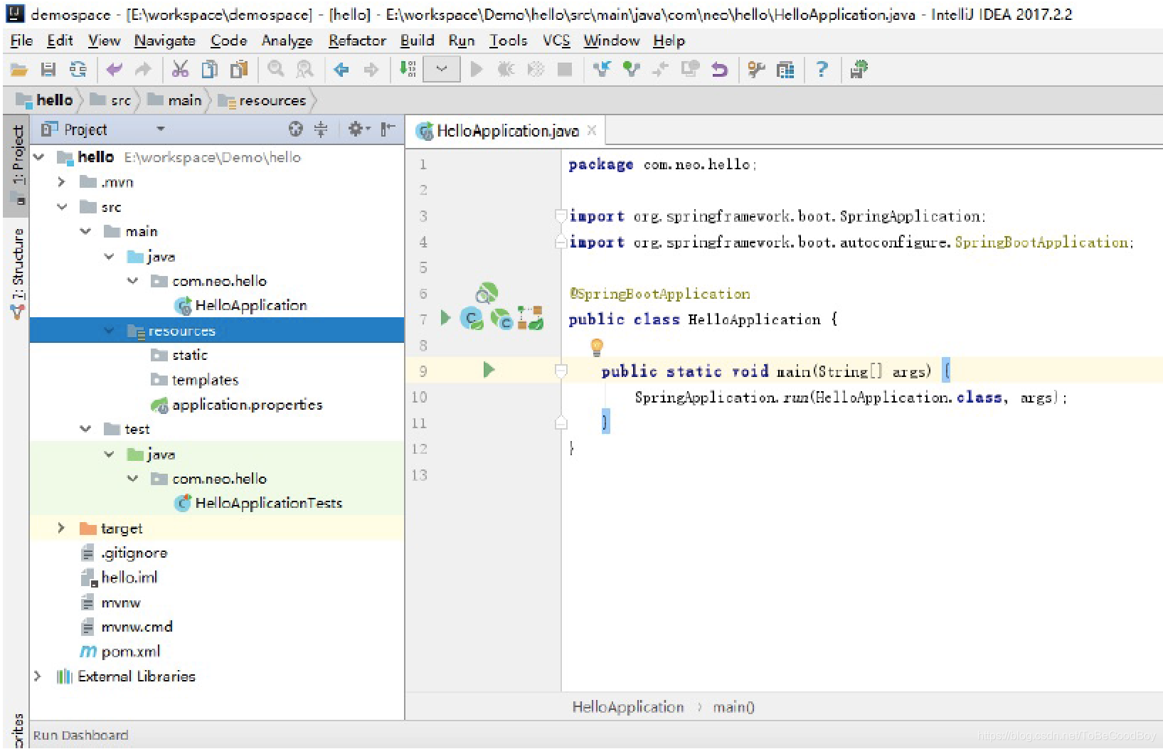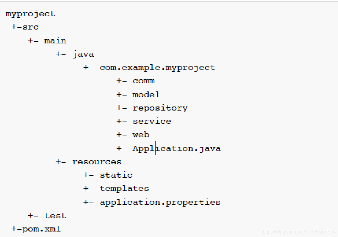 如上图所示,Spring Boot的基础结构共三个文件,具体如下: