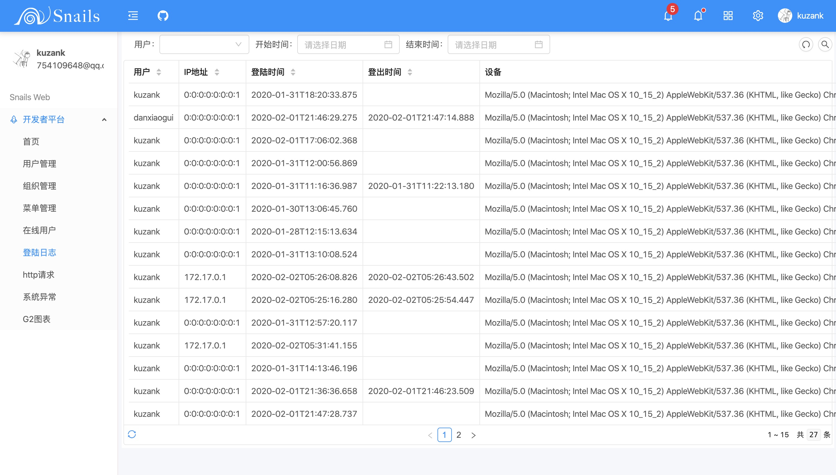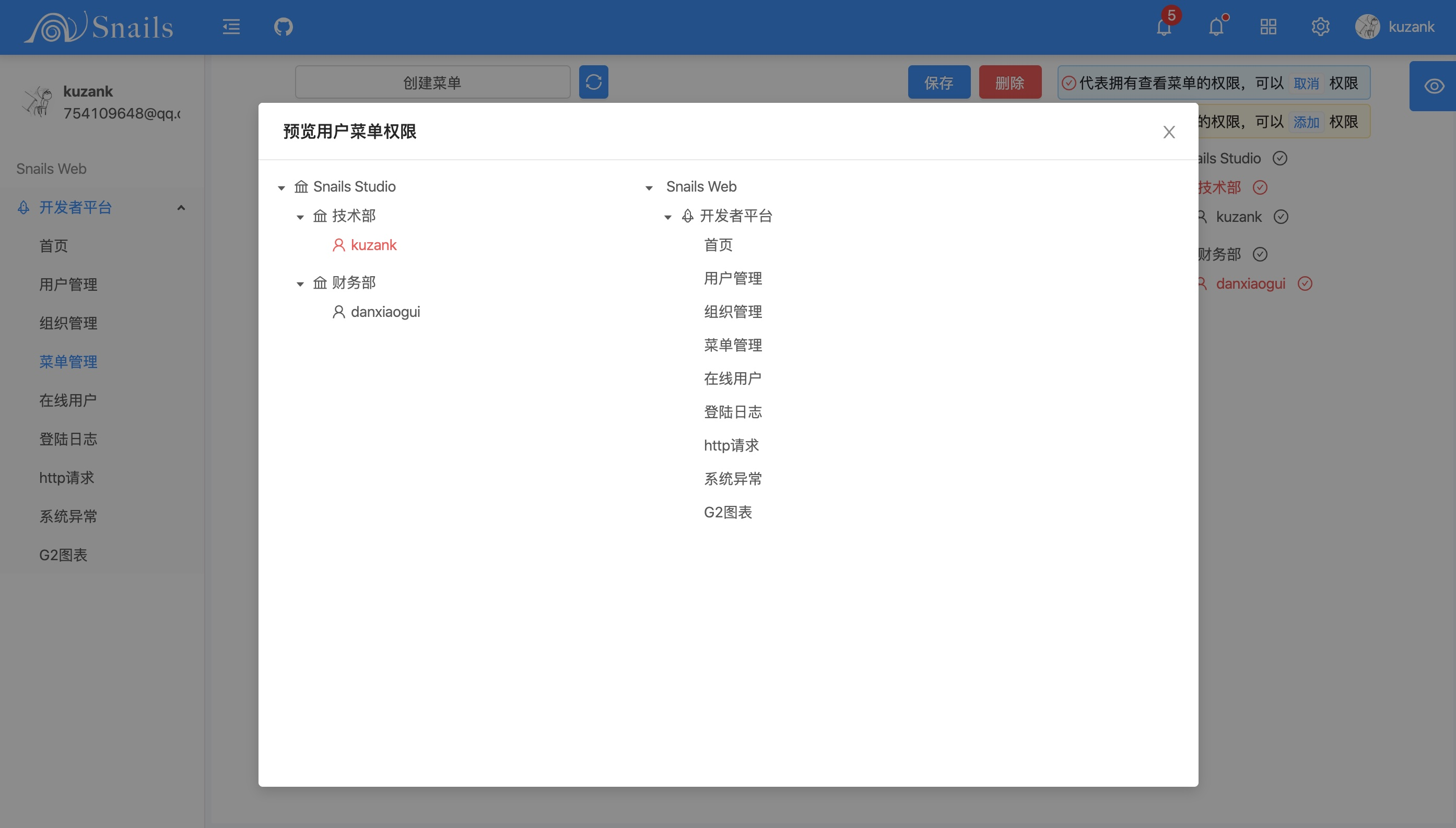 Snails 目前已支持后台管理系统的基本通用功能,未来会将