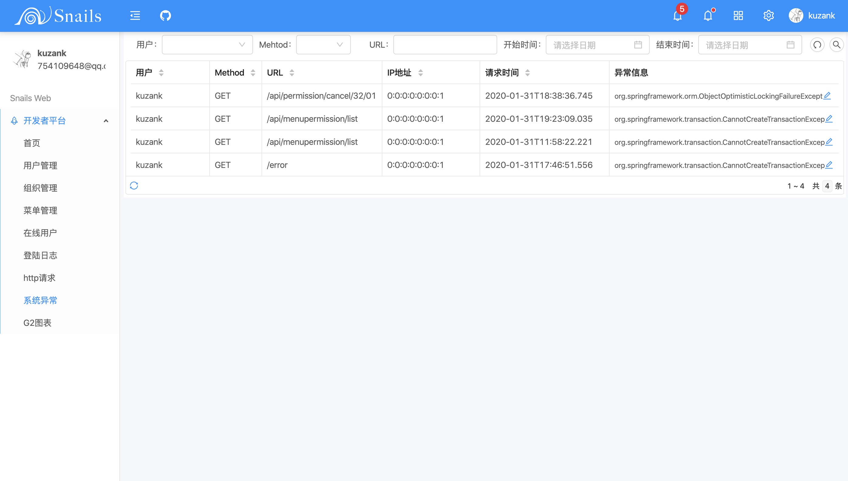 Snails 项目源于给实习生做的一个 Ng-Alain + SpringBoot 入门学习项目,随着项目逐步完善,便将其开源并正式发布 Snails 1.0 版本。