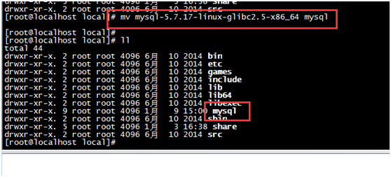 输入命令:mv mysql-5.7.17-linux-glibc2.5-x86_64 mysql
