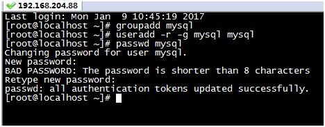 输入命令:useradd -r -g mysql mysql
