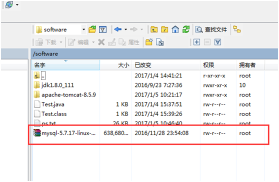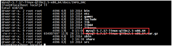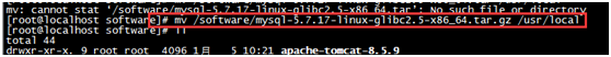 输入命令:mv /software/mysql-5.7.17-linux-glibc2.5-x86_64.tar.gz /usr/local