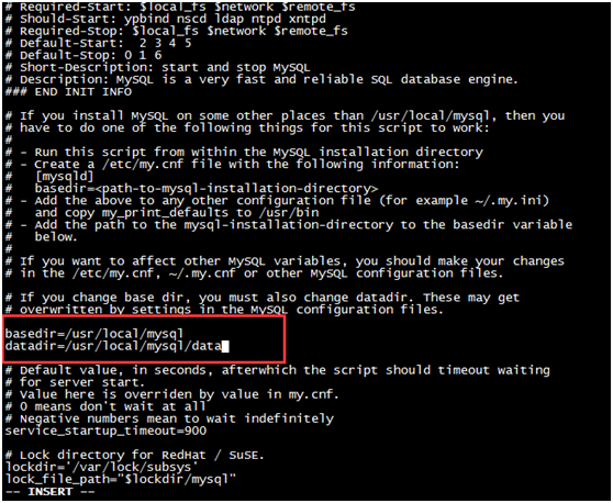 4、 修改 /etc/init.d/mysql 参数,给予2个目录位置