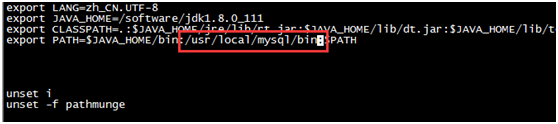 设置环境变量:export PATH=$JAVA_HOME/bin:/usr/local/mysql/bin:$PATH