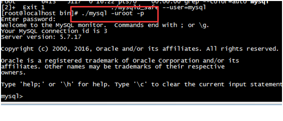 输入命令:./mysql -uroot -p